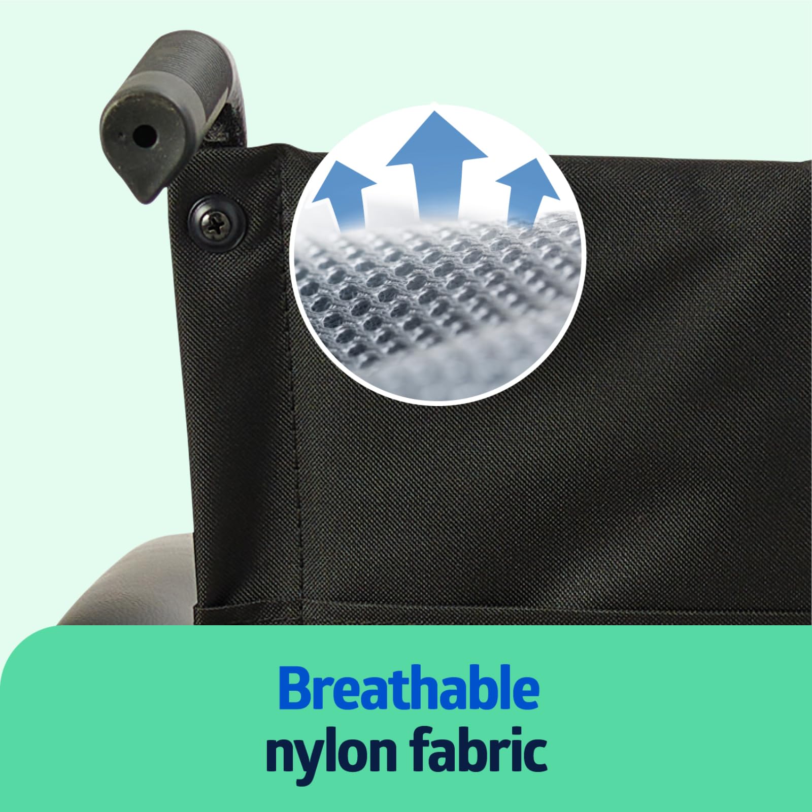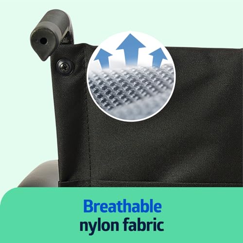 - CONVENIENCE AND ACCESSIBILITY: This foldable wheelchair features a brake system so you can securely lock the wheelchair in place; nylon upholstery is breathable and easy to clean